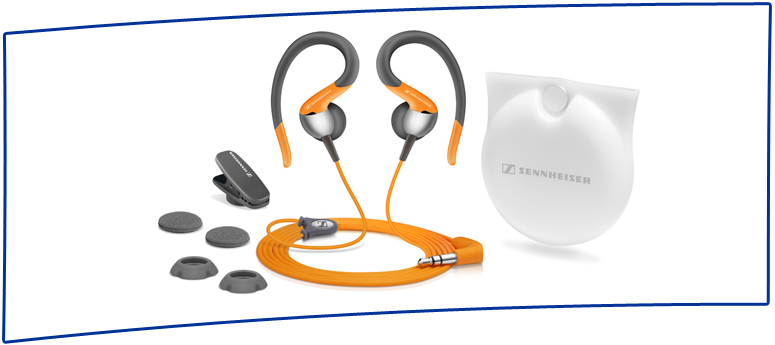 - We provide this set including the Sennheiser OMX 80 Sport II, the ideal phone during sports activities. Thanks to the clip-on design, the headphones are also working during athletic activities. The Sennheiser OMX 80 Sport II is made of sweat-and water-resistant material and is machine washable. (Colours : light blue / orange / black)